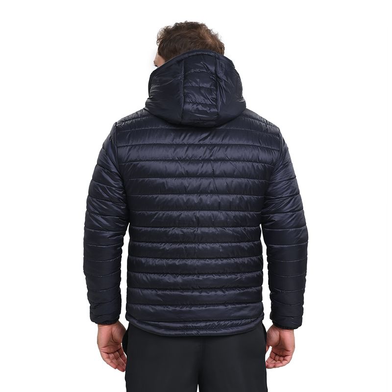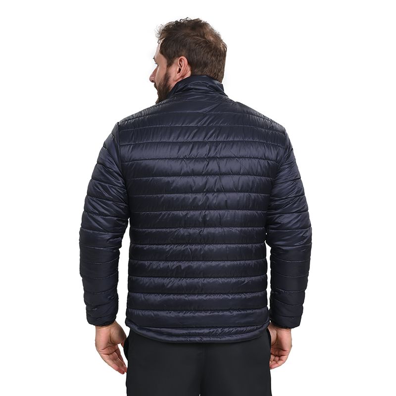A Jaqueta Mizuno Puff , é feita em tecido plano de ripstop leve em matelasse com forro interno contrastante. Gola com zíper para armazenamento do capuz, bolsos frontais e interno e capuz removível, além de logo não refletivo
